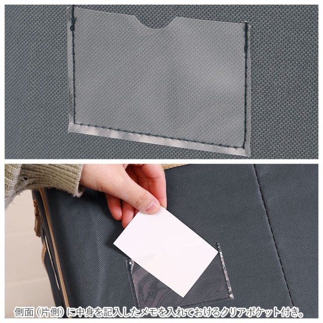 ?側面(片側)に中身を記入したメモを入れておけるクリアポケット付き。