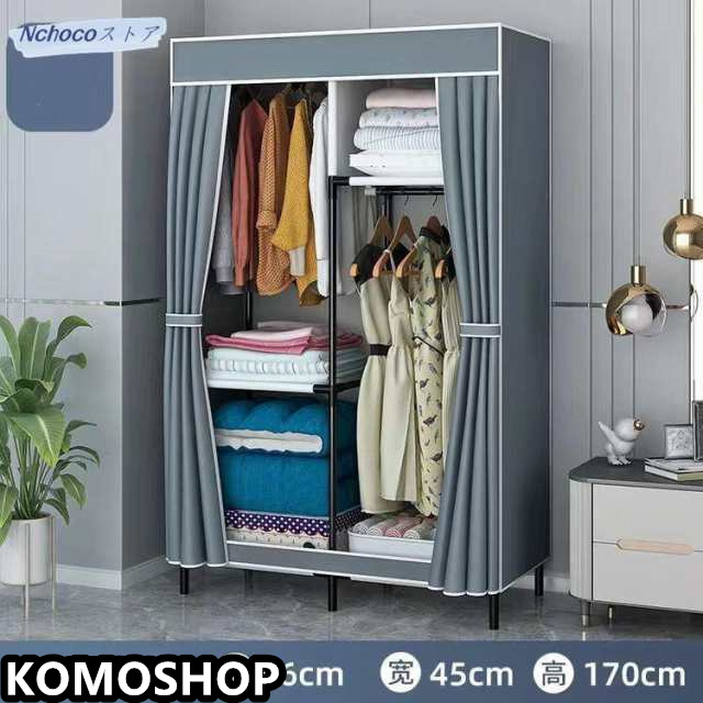 【抜群通気性があるワードローブ カバー付き】豊富な収納スペースがあり、衣類などをまるごと収納出来、カバーで隠せばお部屋がすっきりします。隠しカーテンは不織布なので通気性が良いです。また、カバーをする事でホコリや日焼けから衣類を守ります。