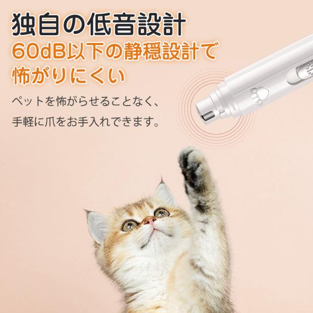 【独自の低音設計】低音50db?60dbに保ち、爪への振動も小さく設計してあります。ペットの恐怖心を和らげます。
