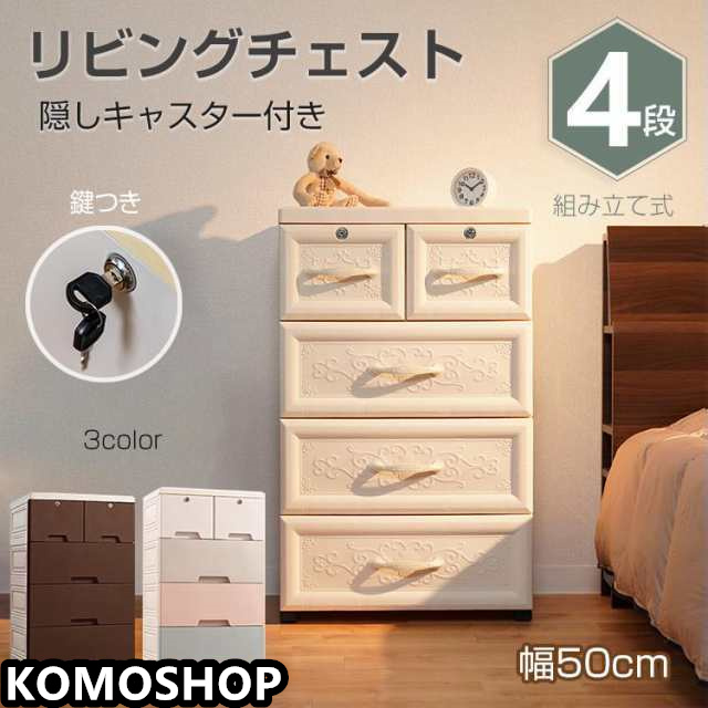 リビング チェスト おしゃれ 4段 収納 ボックス 衣類 衣装 ランドリー ケース タンス プラスチック 引き出し 鍵つき 整理 スリム 家具 新生活