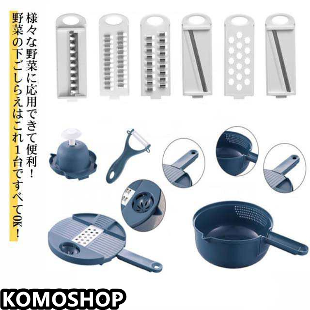 14点セット スライサーセット 1台多機能 おろし 野菜切り器 千切り スライサー 野菜調理器セット 水切りラック 野菜カッター 水切りボウル みじん切り マルチ スライス 細千切り スライサー 細切り 水切り おろし 薄切り 果物 調理器セット キャベツスライサー 食器として