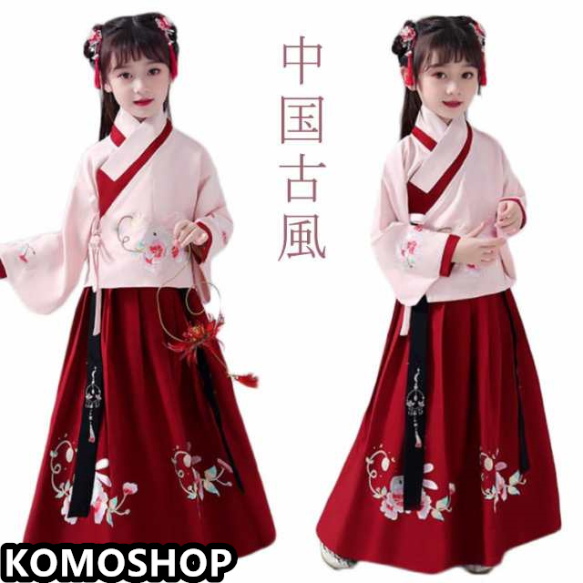子供 漢服 セットアップ 可愛い チャイナドレス チャイナ服 子ども服 中国古風 ハロウィン 中華 コスチューム クリスマス コスプレ 衣装 文化祭 キッズ 赤 送料無料