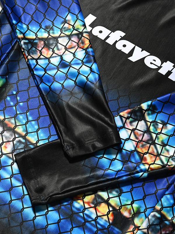 LFYT x reversal NYC LONG RASH GUARD エルエフワイティー リバーサル NYC ロング ラッシュガード 【REVERSAL DOGI DESIGN WORKS(リバーサルドーギデザインワークス)】 格闘技をベースとしてますが、ファッションとスポーツをクロスオーバーさせたアパレルブランド。 格闘家だけならず、あらゆるオシャレ好きから支持されている。 reversal.dogi.design.works(リバーサル・ドーギ・デザイン・ワークス)25周年を記念した「LFYT」×「rvddw」によるコラボレーションコレクション。 オクタゴンをイメージさせる金網とニューヨークの街並みを大胆に落とし込んだインパクトのある1本。 フロントにLafayetteロゴ、バックにreversalロゴをプリント。 4WAYストレッチ素材が運動時における筋肉の無駄なズレを軽減し、吸汗速乾機能が汗を素早く吸収して乾き、ベタつきを軽減。 ジムワークやトレーニングにはもちろん、夏はスイムウェアとしても使用可能。 | |||||||||||||||||||||||||