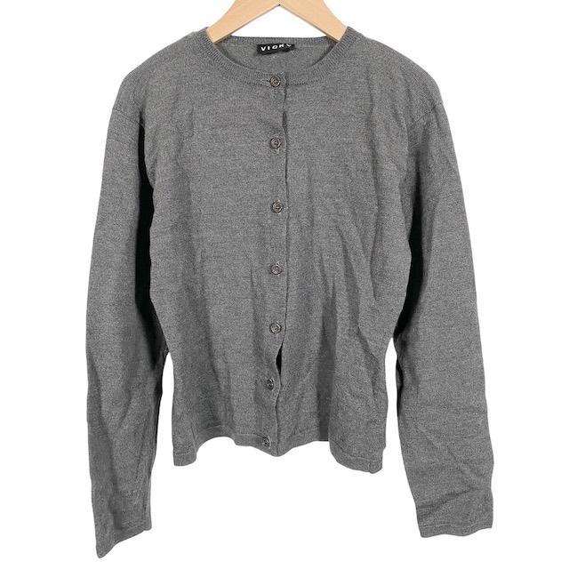 【中古】ビッキー VICKY ニットカーディガン 長袖 無地 ロゴボタン グレー レディース