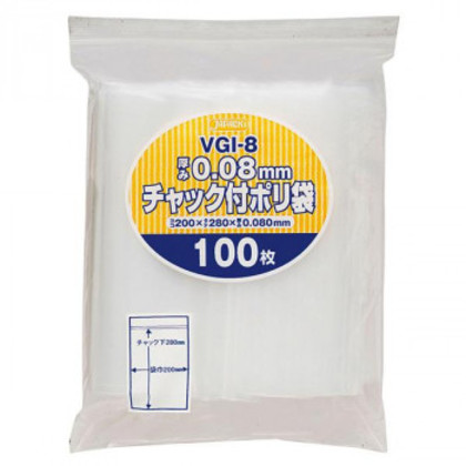 ジャパックス チャック袋付ポリ袋厚口 透明 VGI-8 100枚入 |b03