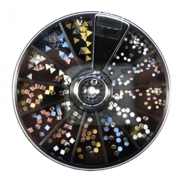 | 上品な3色のラウンド・スクエア・トライアングルのストーンセット。携帯にも便利なケース入り。 ※モニターの設定や撮影状況により、実際の色味と異なる場合がございます。予めご了承ください。 |