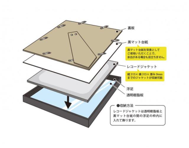 | 隠れず飾れる!315×315mm全面収納できます。 ※縦315×横315×厚み9mmまでのジャケットが収納可能です。 ※特殊なサイズのジャケットは収納できない場合がございます。 ※フレームを飾る場所は、湿気が多いところや直射日光の当たるところは、避けてください。日光が当たる所や高温の所に飾ると、ジャケットや中のレコードが変形する恐れがありますのでご注意ください。 |