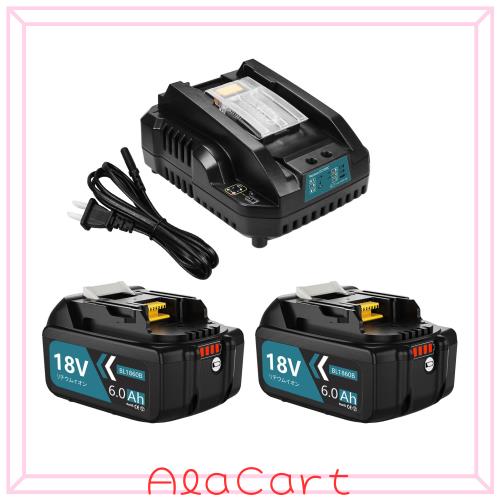 Boetpcr 互換 マキタ 18v バッテリー 充電器セット BL1860B 6000mAh 2個付き 互換 マキタ 充電器 DC18RC付き マキタ バッテリー 18v BL18