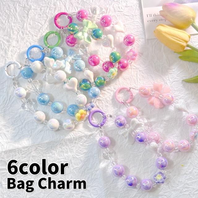 バッグチャーム キーホルダー バッグ用アクセサリー スマホストラップ ピーズ お花 ハート リボン 汎用 カラフル 可愛い おし