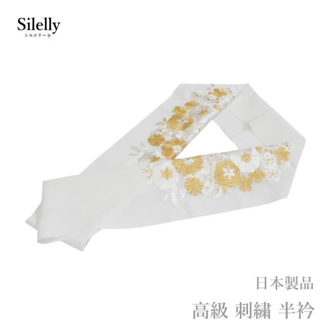 半襟 成人式 結婚式 留袖 高級 刺繍 半衿 白 金 日本製品 シルエリー No.71 (ママ振り 古典柄 洗える 半衿 半襟 ちりめん 刺繍 縮緬/礼装 正装 振り袖 成人式 婚式 フォーマル 留袖用 )メール便 送料無料