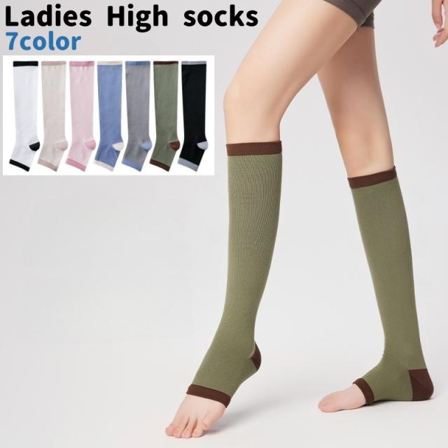 ハイソックス オープントゥソックス レディース 女性 婦人 靴下 くつ下 ソックス つま先なし オープントゥ トゥレス 膝下 黒