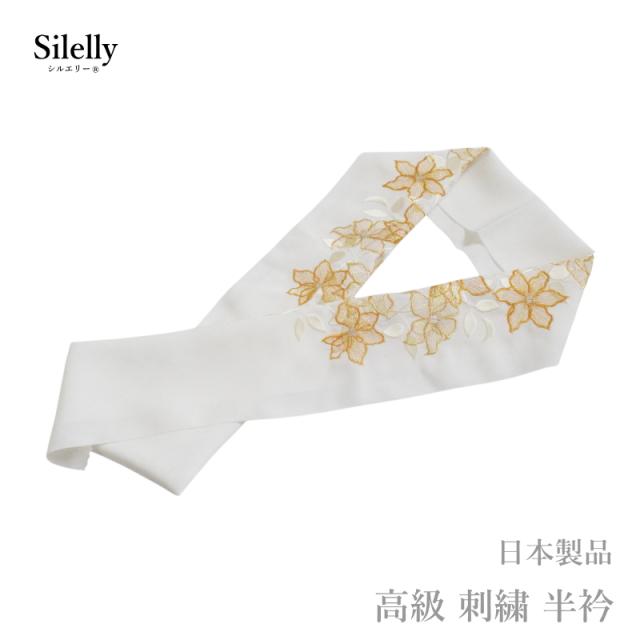 半襟 成人式 結婚式 留袖 高級 刺繍 半衿 白 金 日本製品 シルエリー No.95(ママ振り 古典柄 洗える 半衿 半襟 ちりめん 刺繍 縮緬/礼装 正装 振り袖 成人式 婚式 フォーマル 留袖用 )メール便 送料無料