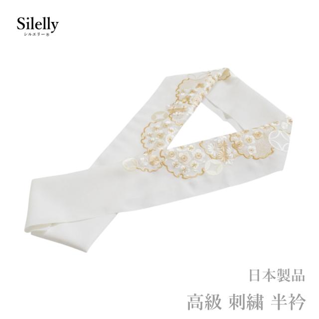 半襟 成人式 結婚式 留袖 高級 刺繍 半衿 白 金 日本製品 シルエリー No.99(ママ振り 古典柄 洗える 半衿 半襟 ちりめん 刺繍 縮緬/礼装 正装 振り袖 成人式 婚式 フォーマル 留袖用 )メール便 送料無料