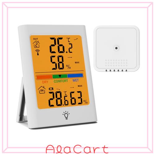 Timloon デジタル温度湿度計 外気温度計 ワイヤレス 温湿度計 室外 室内 高精度 LCD大画面 バックライト機能 最高最低温湿度/快適レベル/