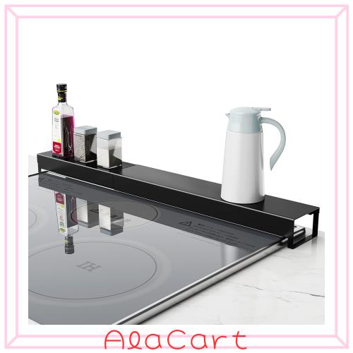 ◆商品名:Orimade 伸縮 排気口カバー ブラック 幅42~80cm コンロカバー までのビルトインガスコンロ・IHコンロ対応 調味料ラック 油はねガード 約W
