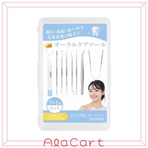 オーラルケアツール 歯石取り 充電式LEDデンタルミラー 歯石除去キット スケーラー 歯石取り器具 歯用ツール (8本セット)