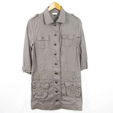 【中古】オットー OTTO シャツ ワンピース 七分袖 膝丈 ストレッチ 綿 L カーキ kz10913 レディース