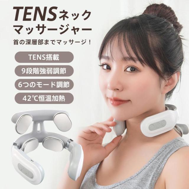 ネックマッサージャー マッサージ器 温熱 肩こり 首 コードレス 振動 TENSパルス 4個電極シート 健康グッズ 多機能 解消グッズ プレゼント