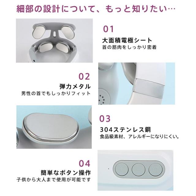 全部で4つの電極シートが首?肩に全面アプローチでき、この一台があれば、首まわりのトータルケアを叶えます。