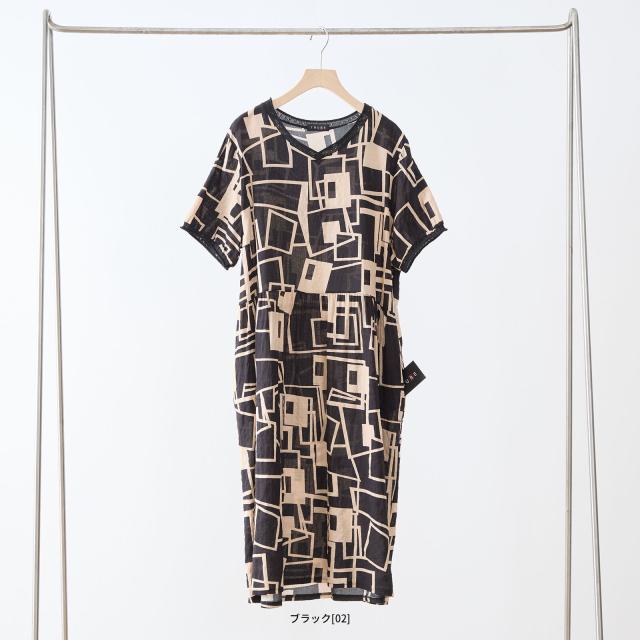 シンプルながら存在感のある幾何学模様が印象的なワンピース。