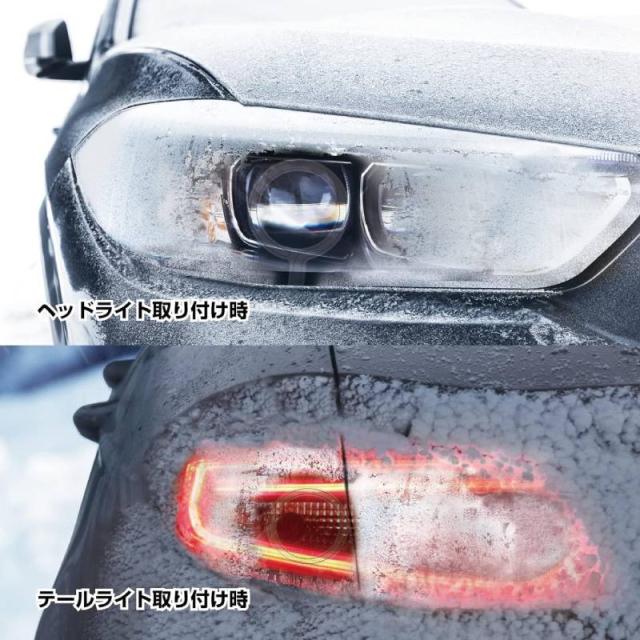 ●ヘッドライト、テールライトに貼り付ける、融雪ヒーター。