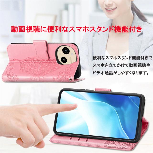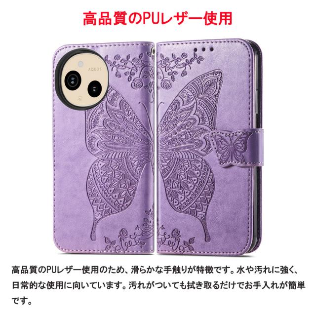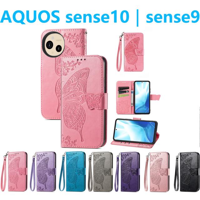 AQUOS sense10 sense9 手帳型 ケース PUレザーケース ストラップ付 人気 カード収納 アクオス センス ストラップホール 蝶柄 マグネット スタンド 衝撃吸収 スマホカバー 手触りの良い高品質PUレザー使用