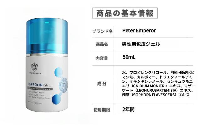Peter Emperor 包皮ケアジェル 男性用、包皮長い対策、肌の保湿と柔らかさ、肌の弾力性が高まる、臭いを取り除く、剥がれて自然に引っ込む、50ml
