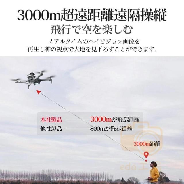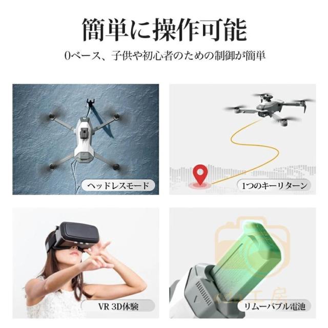 - 梱包されている箱の中に中国語の説明書が入っていて翻訳しながらだと面倒だと思っていたら本体の中に別途日本語の説明書が同梱されていて助かった 操作は慣れない初心者には少し難しい バッテリーの持ちは記載されている時間よりも短いので予備のバッテリーは必要と思います 障害物を回避するような記載もありますが警告音らしき音は鳴りましたが回避する前にぶつかりました 商品レビュー投稿で予備バッテリーがもらえると記載されてましたが既に終了していたようでお特感は無くなりました 飛行距離は3000m飛ぶ様な記述ですが実際には100mでコントロールは途切れました WiFiが繋がっているのは精々30m程度でそれ以上の距離は映像が切れます カメラも写真にはレンズが複数映っていますが実際のレンズは1つだけで後はダミーで高解像度ではありませんでした 追跡する機能もゆっくりと動かないと直ぐに対象を見失うのであまり使える機能では無いです これらを踏まえて半径30m以内で無風の環境が整っているのであればある程度楽しめると思います