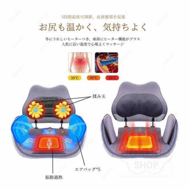 マッサージチェア マッサージシート マッサージ器 お尻 腰 背中 骨盤 座椅子 安い 高級 小型 コンパクト 折り畳みでき 持運び便利 3段階強度/温度 揉み玉