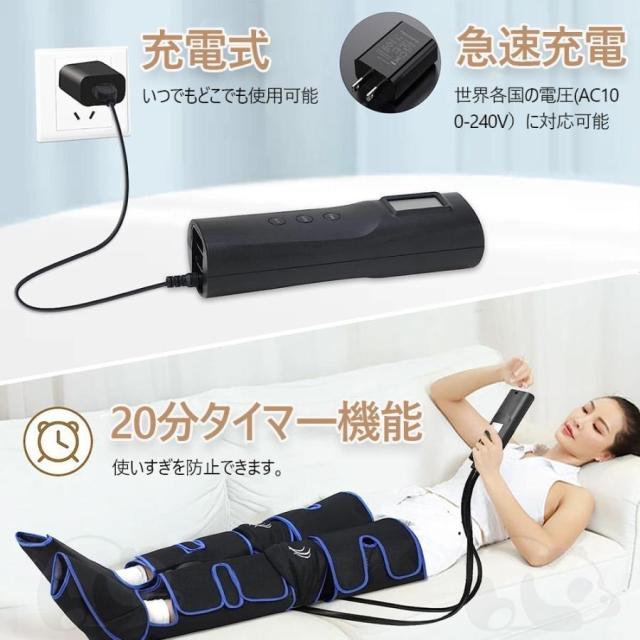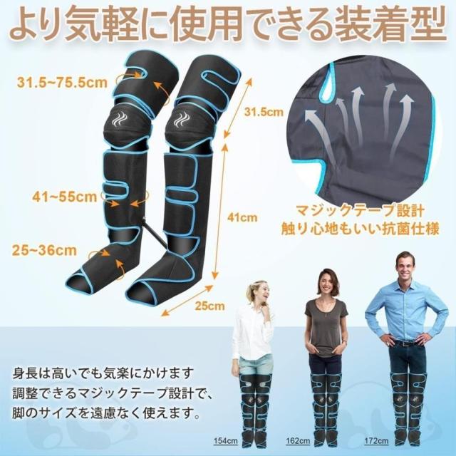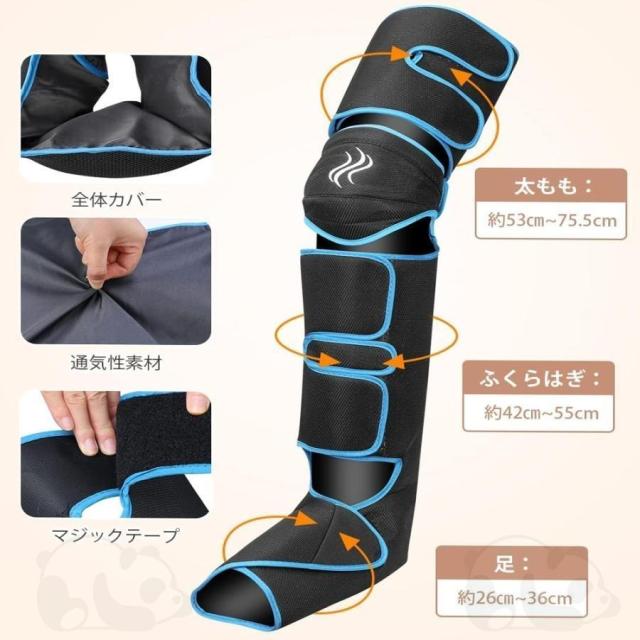 まずはふくらはぎと太ももを加圧し、次は足で、そしては全体、繰り返し。