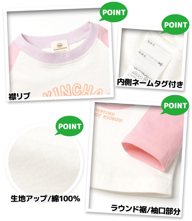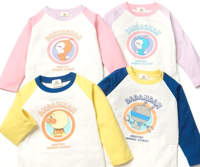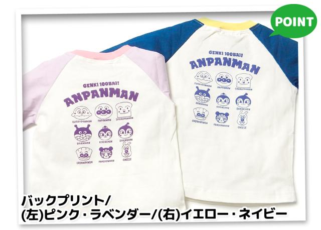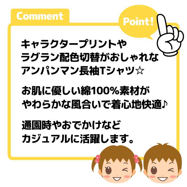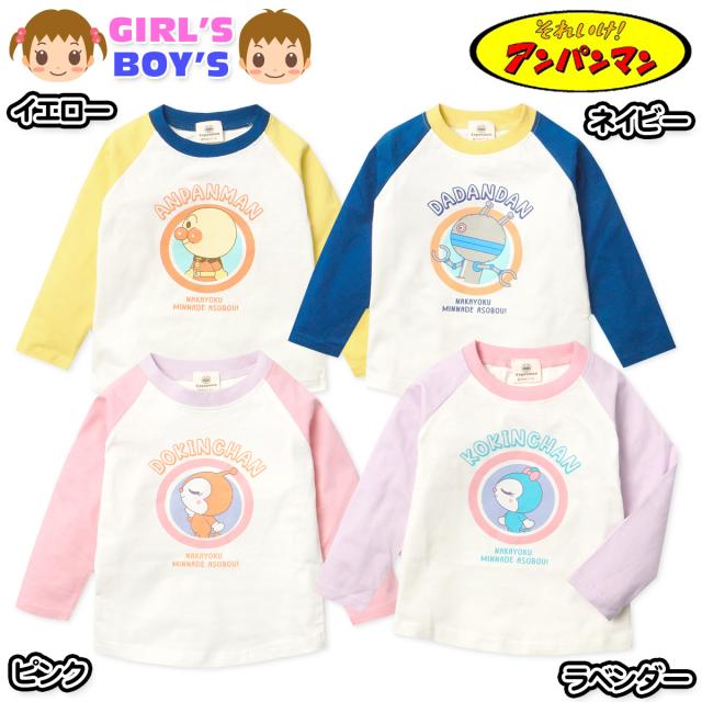 【送料無料】男児 女児 ベビー 綿100% 長袖 Tシャツ アンパンマン ラグラン配色切替 ネームタグ ベビー服 男の子 女の子 80cm 90cm 95cm iw-1235【メール便対応】
