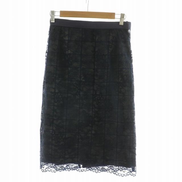 【中古】ルーニィ LOUNIE タイトスカート ひざ丈 チェック レース 38 グレー パープル 17513341 /NQ