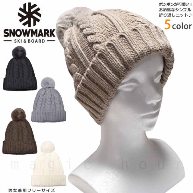 ◆ SNOW MARK スキースノボー ニット帽 ニットキャップ レディース メンズ ビーニー 帽子 かわいい ボンボン付き 折返し ◆
