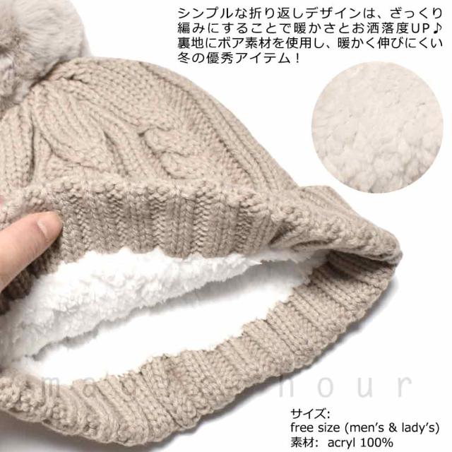 スキースノーボード ニット帽 ニットキャップ レディース メンズ ビーニー ぼんぼん付き 裏 ボア お洒落 かわいい 帽子 無地 冬用 ウィンター スノボ 雪遊び