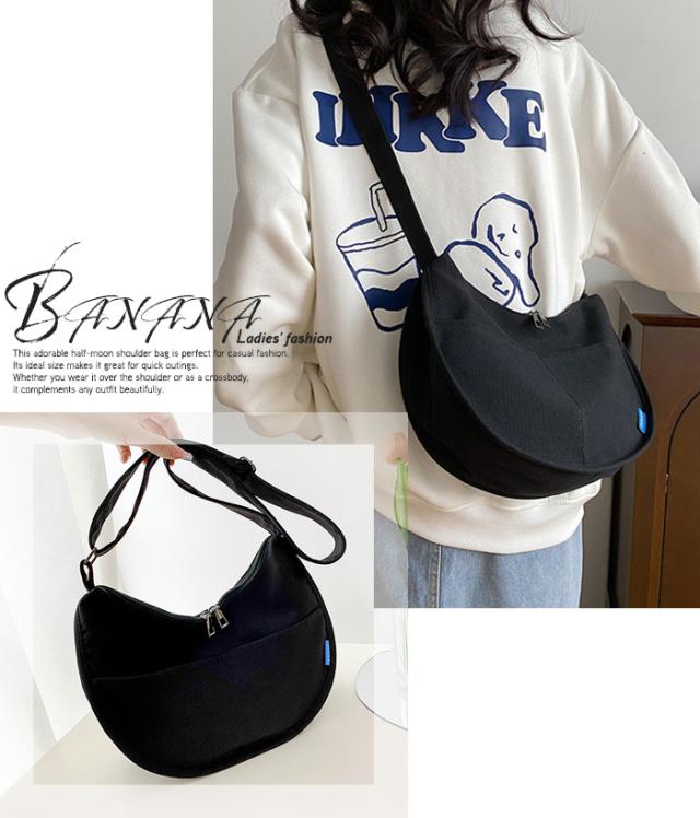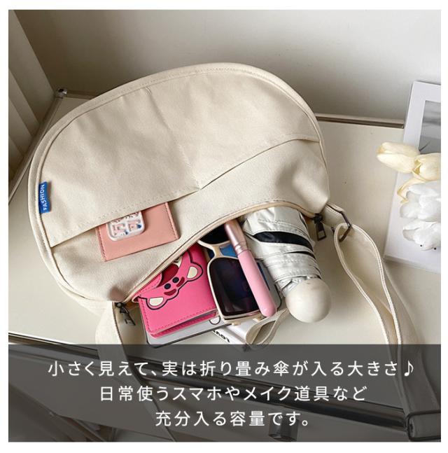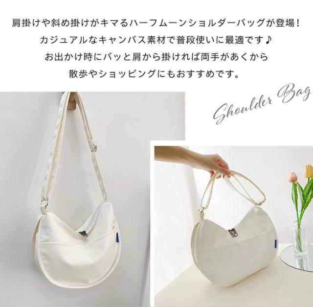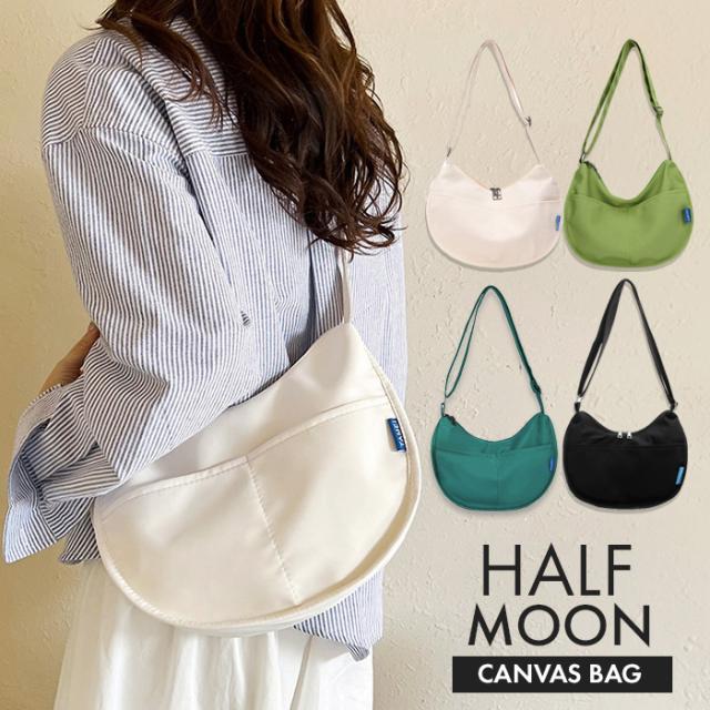 数量限定23%OFF ショルダーバッグ 新作 レディース ハーフムーンバッグ 斜めがけバッグ ラウンドショルダー 大人 軽量 キャンバス 超軽量 おしゃれ おすすめ かわいい 可愛い カジュアル ミニバッグ きれいめ 小さめ 黒 白