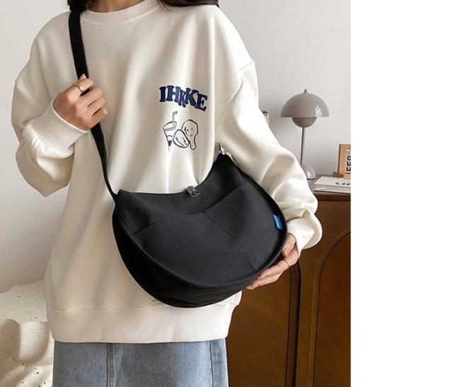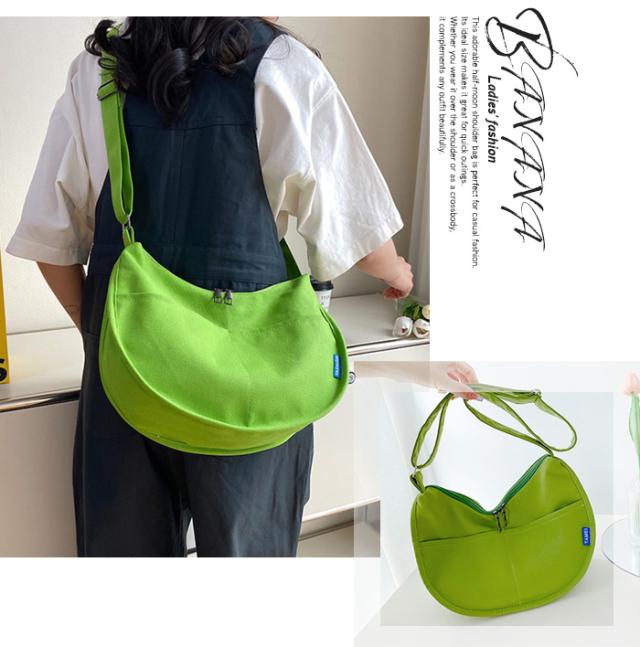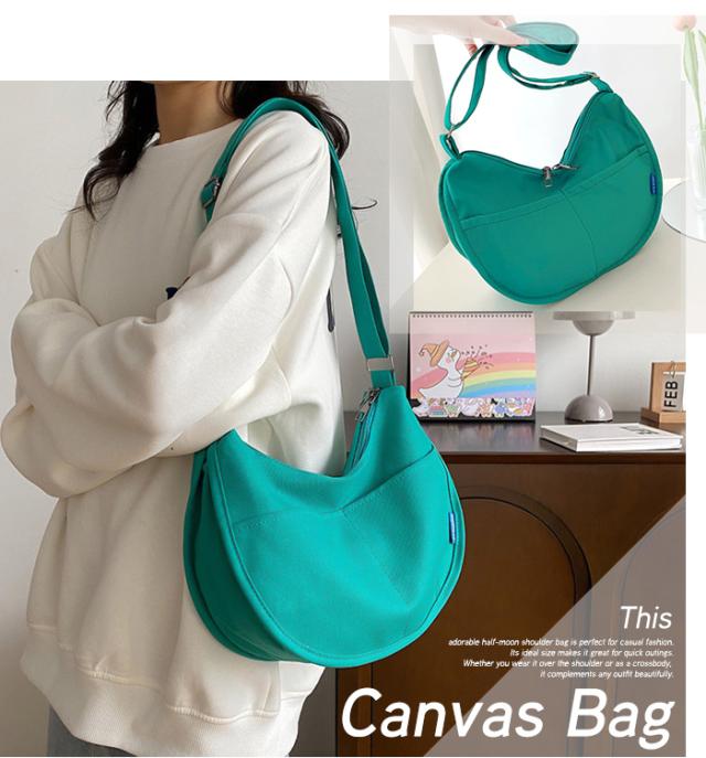 ◇カジュアルなキャンバス素材のハーフムーンショルダーバッグです。