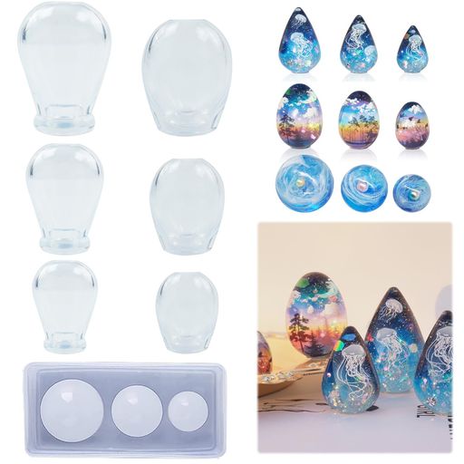【AAGWW】シリカゲル金型 卵 水滴 球形 金型 樹脂型 粘土 石膏 エポキシ樹脂 繰り返し使用可能 ハンドメイド DIY ハンドメイド(製品の内容:ミニ卵型3品+ミニしずく型3品+おまけ3コマ星空ボー…