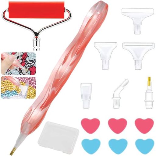 セット内容:ダイヤモンドアートペン1セット;収納ボックス付き:ピンクリップルダイヤモンドドローイングペン1pcs(6点交換用頭部)+リトルレッドローラー+ラブドリルクレイ3ブルー3レッド;ダイヤモンドペンは樹脂製で、丈夫で耐久性があり、錆びにくく、変形しにくく、軽量で持ちやすい。頑丈さと便利さの完璧なバランスを体験しながら、見事なダイヤモンドペインティングを作成できます。