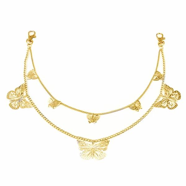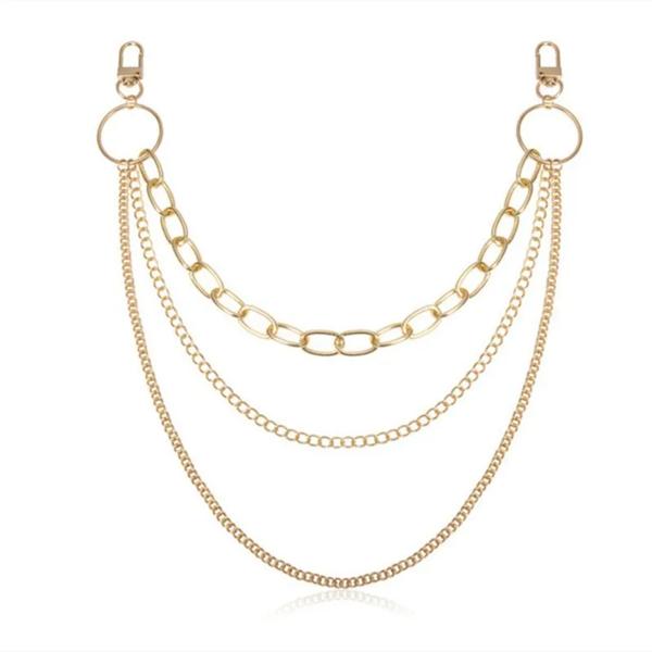 パンク蝶バイカージーンズリンクパンツキーホルダー女性男性ベルトキーチェーン二層ズボンチェーンファッションヒップホップジュエリー