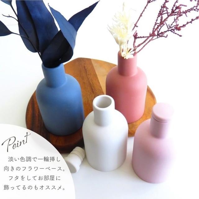 素焼きのような風合いは表面がなめらか、ナチュラルな美しさの器は淡く優しい色味をご用意しました。お部屋と馴染みやすく、フラワーベースとして使用しない時は蓋をしてインテリアアイテムとして愉しめます。
