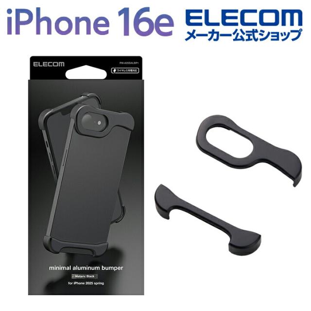 【在庫処分・お買い得!】 エレコム iPhone 16e 用 アルミバンパー iPhone16e アルミ バンパー ケース カバー メタリックブラック ┃PM-A25SALBP1