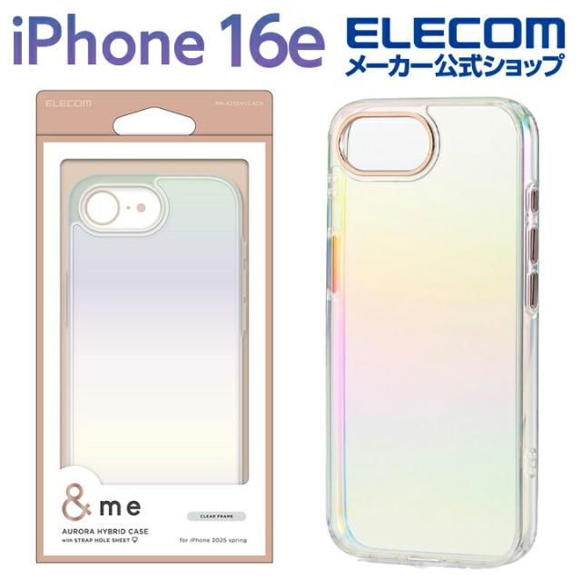 【在庫処分・お買い得!】 エレコム iPhone 16e 用 &me ハイブリッドケース オーロラ iPhone16e ハイブリッド ケース カバー ストラップシート付属 クリア ┃PM-A25SHVCACR