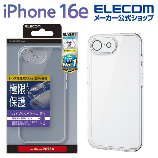 【在庫処分・お買い得!】 エレコム iPhone 16e 用 ハイブリッドケース 極限Plus メタルステッカー付 iPhone16e ハイブリッド ケース カバー クリア ┃PM-A25SHVCKKPCR