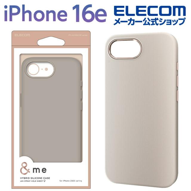 【在庫処分・お買い得!】 エレコム iPhone 16e 用 &me ハイブリッドシリコンケース ストラップホールシート付 iPhone16e ハイブリッド シリコン ケース カバー ショルダーストラップ付き グレージュ ┃PM-A25SSCSHGB