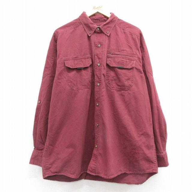 古着 長袖 シャツ メンズ エンジ XLサイズ 中古 トップス 中古 古着