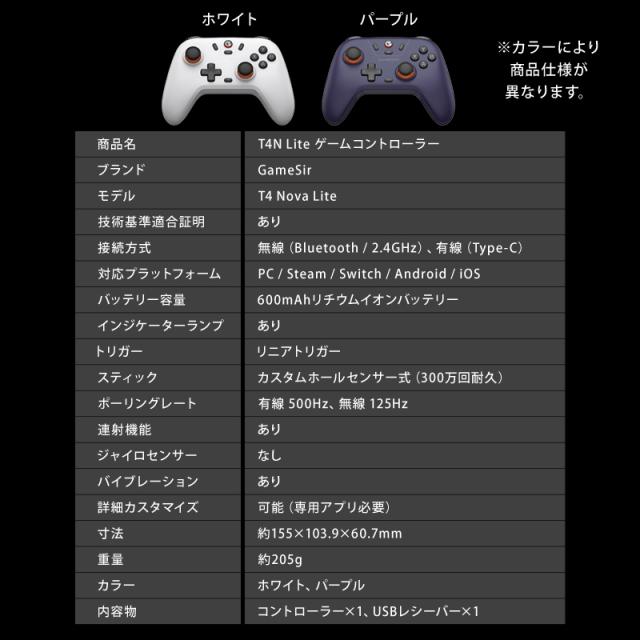 GameSir T4N Lite ゲーミングコントローラー ゲームパッド 純正 ワイヤレス Bluetooth 2.4GHz 有線接続 Windows PC Android iOS Switch対応 連射 振動 技適あり