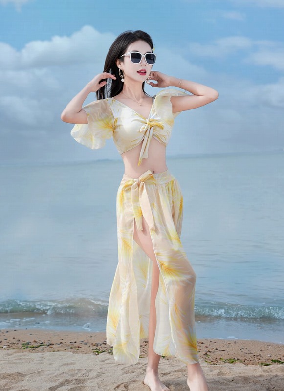 水着 レディース タンキニ ビキニ セパレート 3点セット ショール パレオ付き 二の腕カバー 夏 リゾート 袖付き ハイウエスト 送料無料
