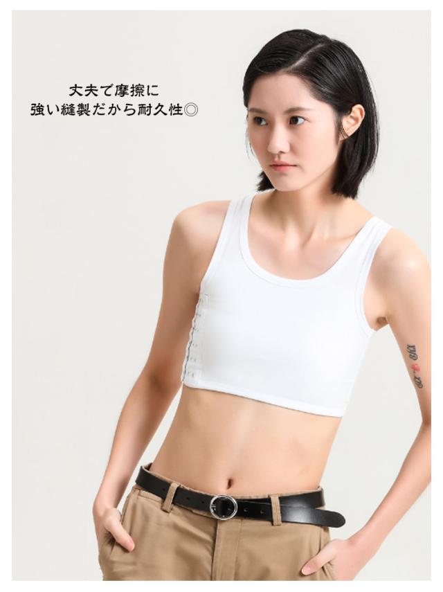 | 胸つぶしインナーでバストを綺麗な平らに♪ 3段フックで調整可能 S-5XL 二重構造のホールドデザインで余ったお肉をしっかりタイトにホールド。 大きい胸を目立ちにくくします。 3段階の調節が可能なフロントホック。ホールド力があり、調節の自由度も高いのが特徴です。 丈夫で摩擦に強い縫製だから耐久性◎ 柔らかく肌に優しい生地を採用しています。汗をよく吸収し乾きやすいので快適な着心地が長時間続きます。 | |