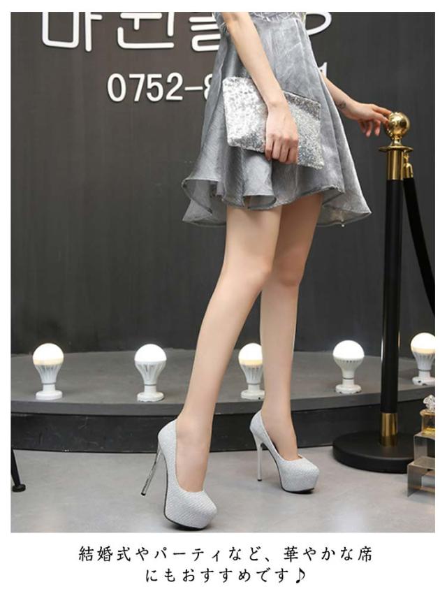 レディース 脱げない 【14cmヒール】足元キラキラ 前厚 靴 痛くない ハイヒール 結婚式 キャバシューズ 【14cmヒール】足元キラキラ ピンヒール サンダル オフィス 美脚パンプス ブライダルシューズ
