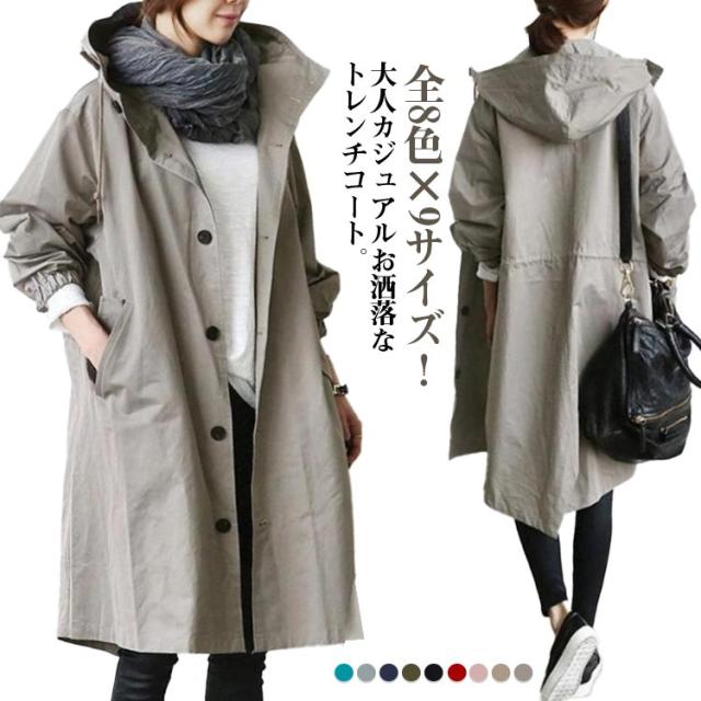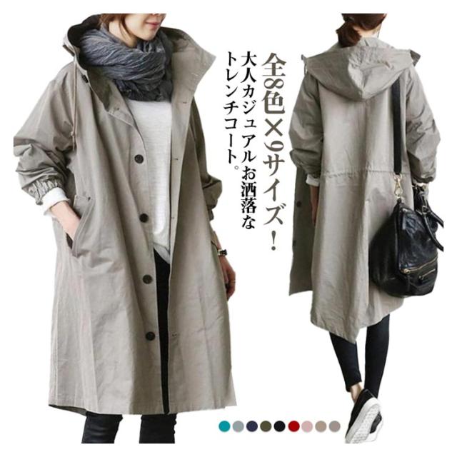 ロングコート 春 アウター 長袖 トレンチコート きれいめ トレンチコート フード付き 春コート スプリングコート ロングコート スプリングコート 20代 ライトアウター 大きいサイズ カジュアル 春 秋 春服 春物 レディース 30代 40代 50代
